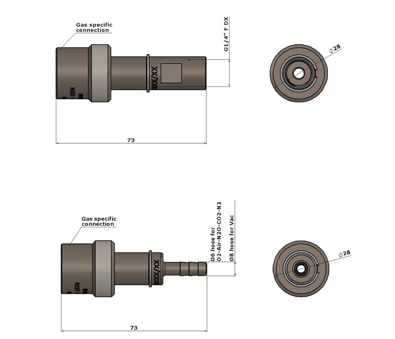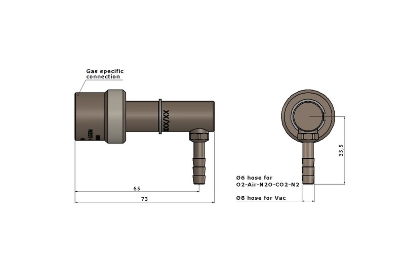 The NIST coupling complies with the UNI EN ISO 18082:2018 standard, it allows the desired medicinal gas to be collected from the medical-hospital system. Each differs in size in such a way as to prevent interchangeability and therefore allows each individual coupling to be assigned to the respective corresponding gas outlet.