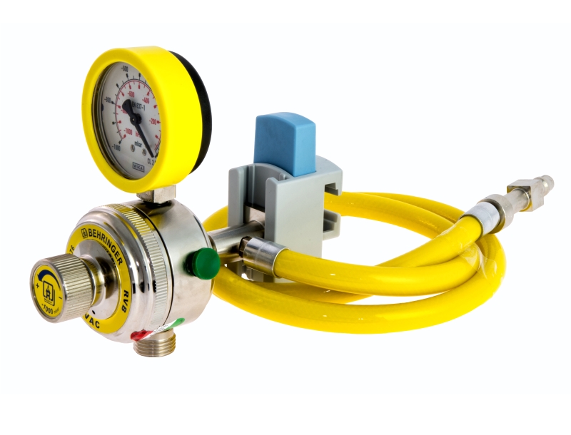 El regulador de vacío RVB regula y mide el nivel de depresión de la aspiración médica, con tres diferentes modelos: RVB 1000 hasta -950 mbar, RVB 600 hasta -600 mbar, torácico y RVB 250 hasta -250 mbar, pediátrico; el dispositivo puede estar conectado a la red de distribución del gas a través de conexiones ideales que respetan las normativas AFNOR NF S 90-116, DIN 13260-1, UNI 9507, BS 5682 o a través de roscado G 1/4" M DER, en salida presenta una conexión roscada G 1/2" M DER; el regulador de vacío RVB está disponible incluso en la configuración con conexión de barra con tubo de goma de uso medicinal y conexión específica.